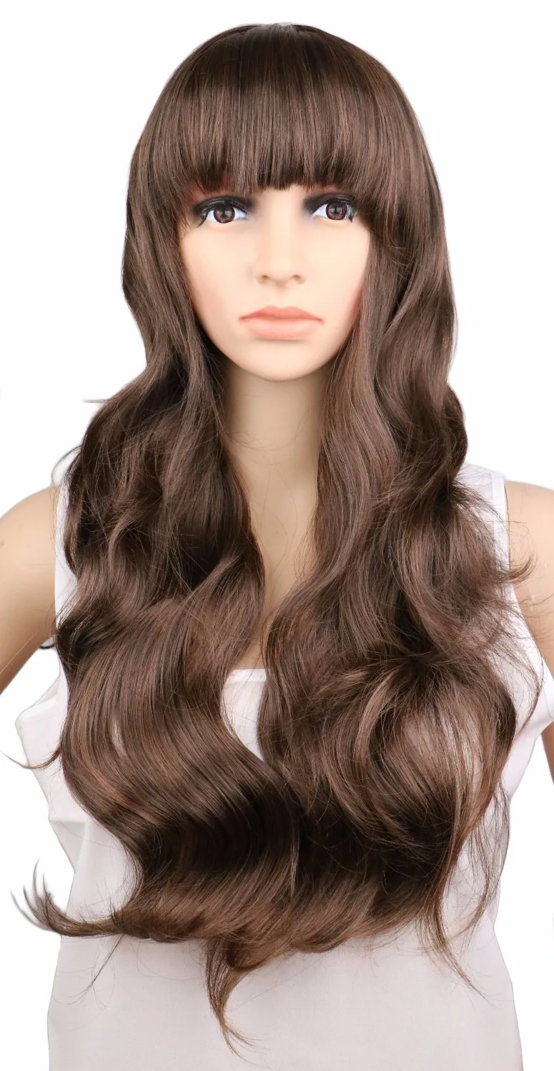 Hot Sale QQXCAIW Women Ladies Natrual Long Wavy Wig Cosplay Black Light Brown Dark Brown 68 Cm Synthetic Hai
