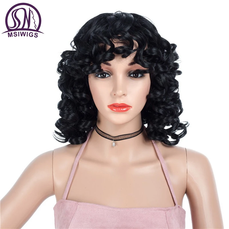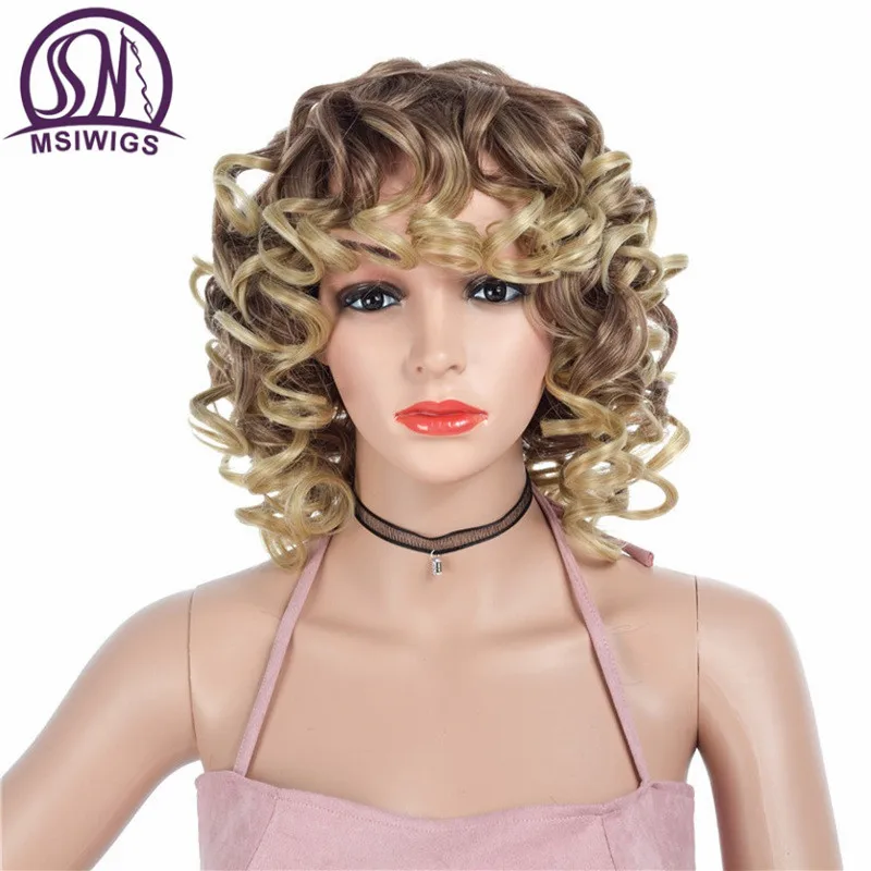 MSIWIGS Ombre Blonde Curly Short Wigs with Bangs Black Synthetic Heat Resistant Wig for Women Mix C