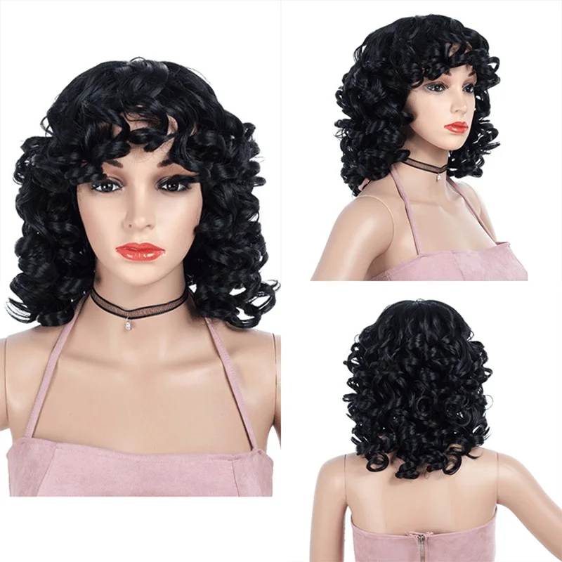 BEST MSIWIGS Ombre Blonde Curly Short Wigs with Bangs Black Synthetic Heat Resistant Wig for Women Mix C