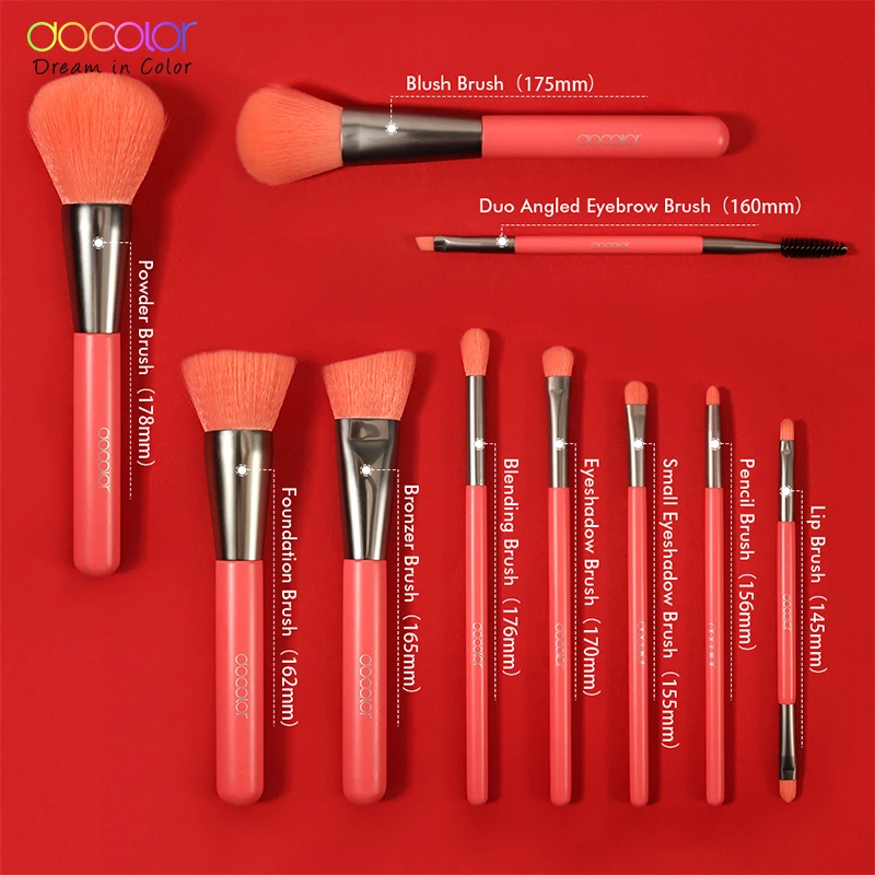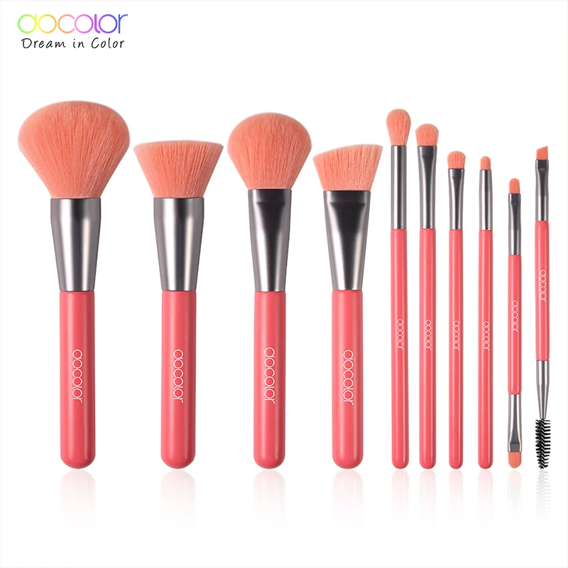 Docolor 10pcs Neon Brush Set Pro Powder Blush Foundation Eyeshadow Makeup Brushes Set Soft Syntheti