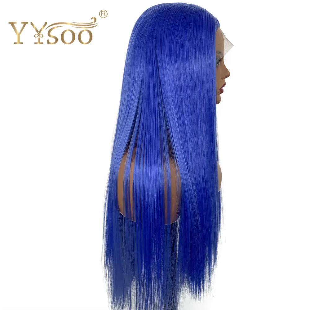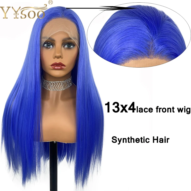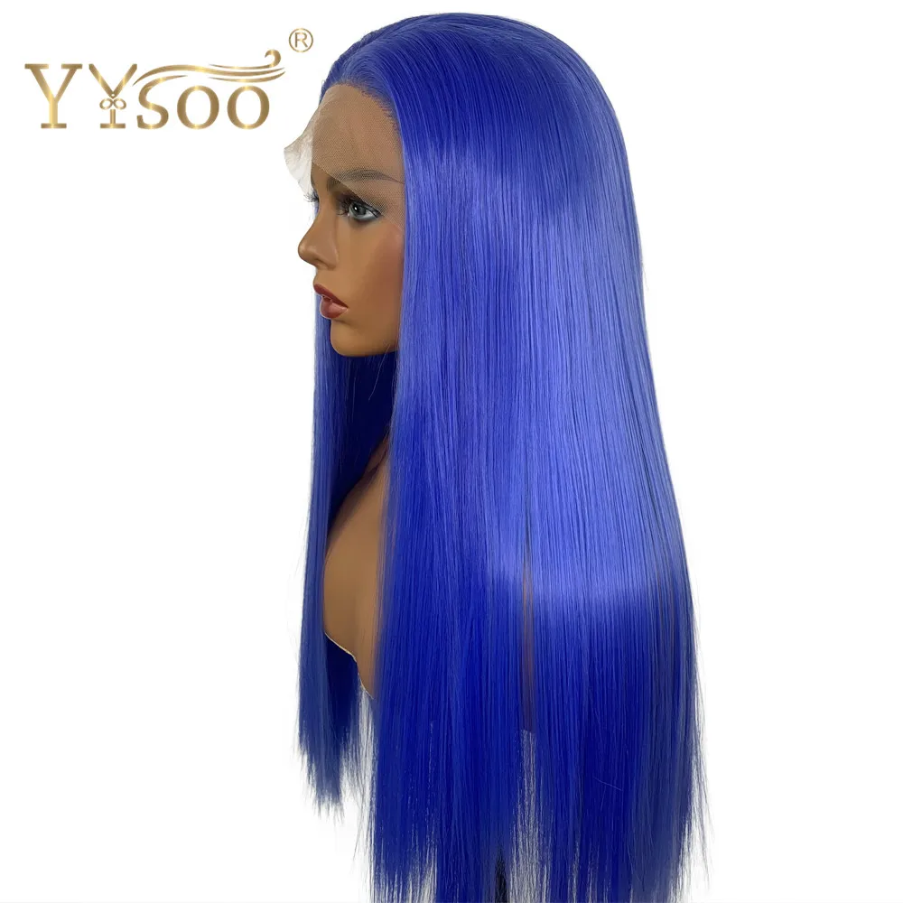 ORIGINAL YYsoo Synthetic Lace Front Blue Wig13x4 Long Silk Straight Fashion Blue Wig with Free Part High Tem