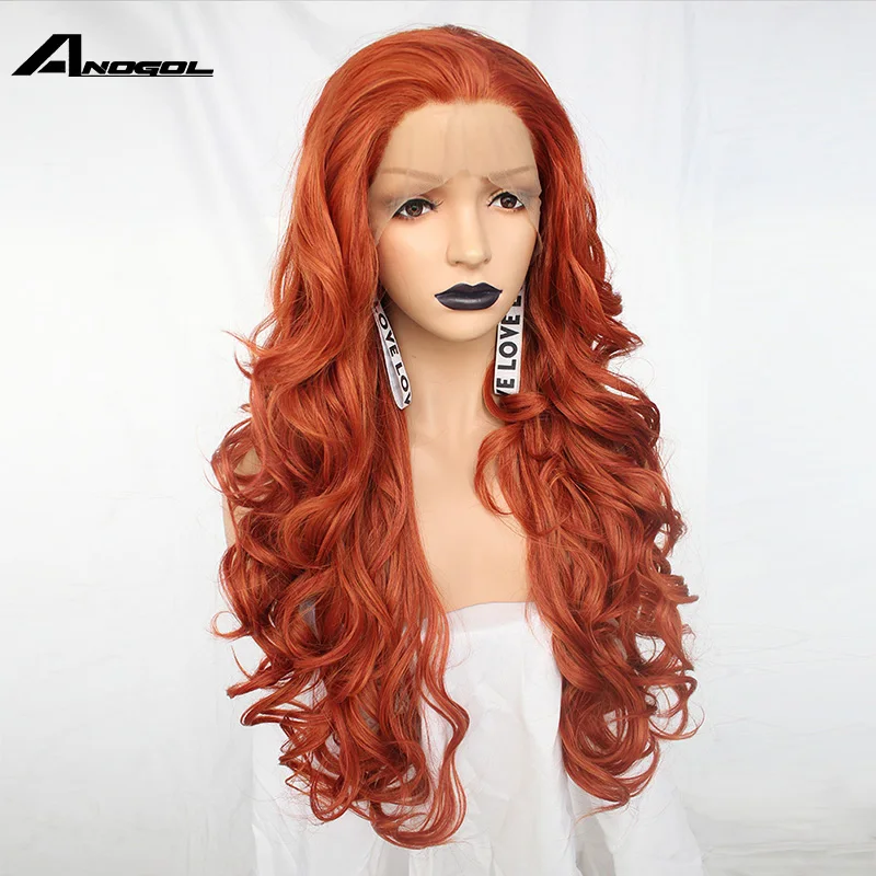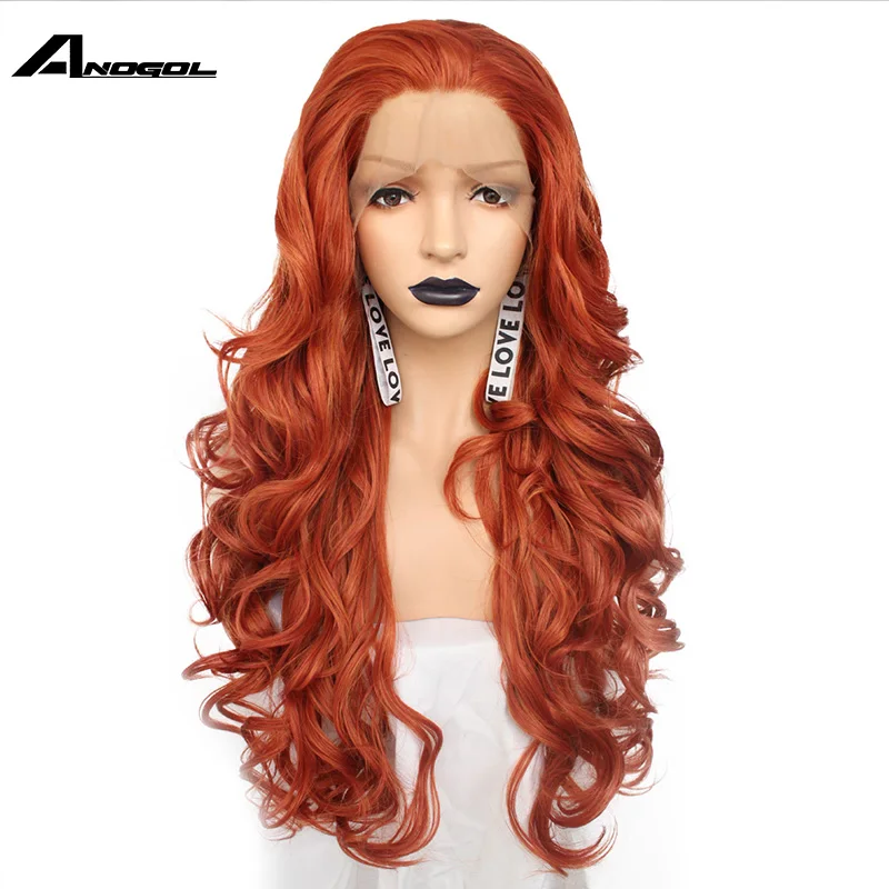 ORIGINAL Anogol Free Part Long Body Wave Copper Red High Temperature Heat Resistant Fiber Blonde Synthetic L
