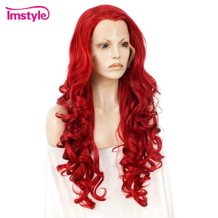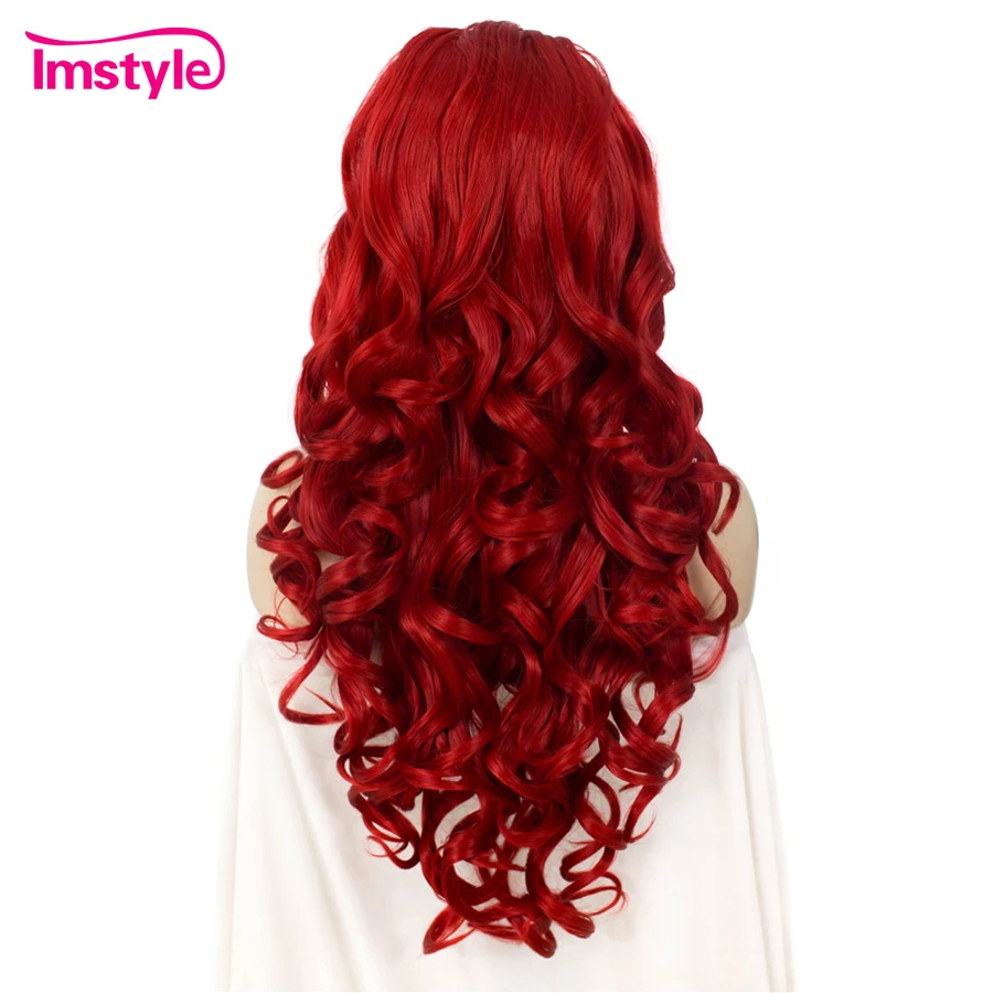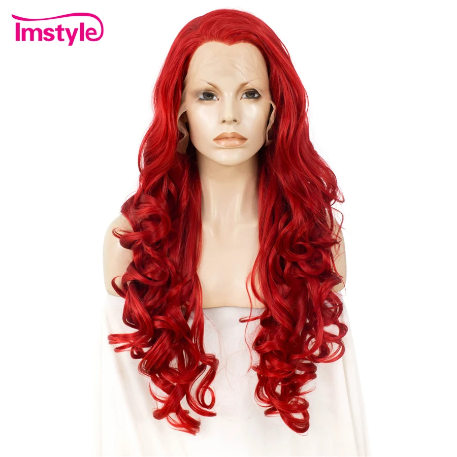BEST QUALITY Imstyle Red Wig Synthetic Lace Front Wigs Long Wavy Wigs For Women Heat Resistance Fiber Glueless D