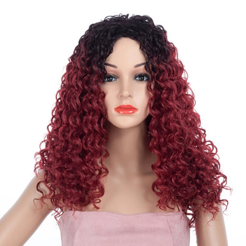 Afro Synthetic ombre kinky curly wig 59cm long black burg curl wigs for women